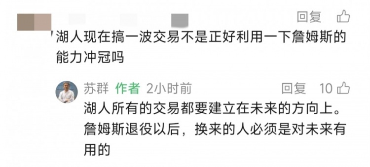 “湖人所有的交易都要建立在未来的方向上。詹姆斯退役以后,换来的人必须是对未来有用的。”