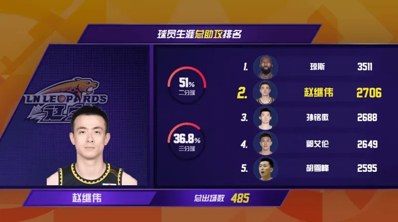 开赛至今,辽宁男篮8胜7负暂列积分榜第9。赛后,辽宁本钢主教练杨鸣指导表示:“赵继伟在收尾阶段的三分压制了对手的气势,他在场上起到了稳定军心的作用。”赵继伟的复出不仅稳定了球队信心,也将在很大程度上缓解辽宁队进攻端的问题。赵继伟在其已出战的485场比赛中,累计送出2706次助攻,是CBA本土球员历史助攻王。自2020-2021赛季起,赵继伟已连续5个赛季常规赛场均送出6次以上的助攻。
